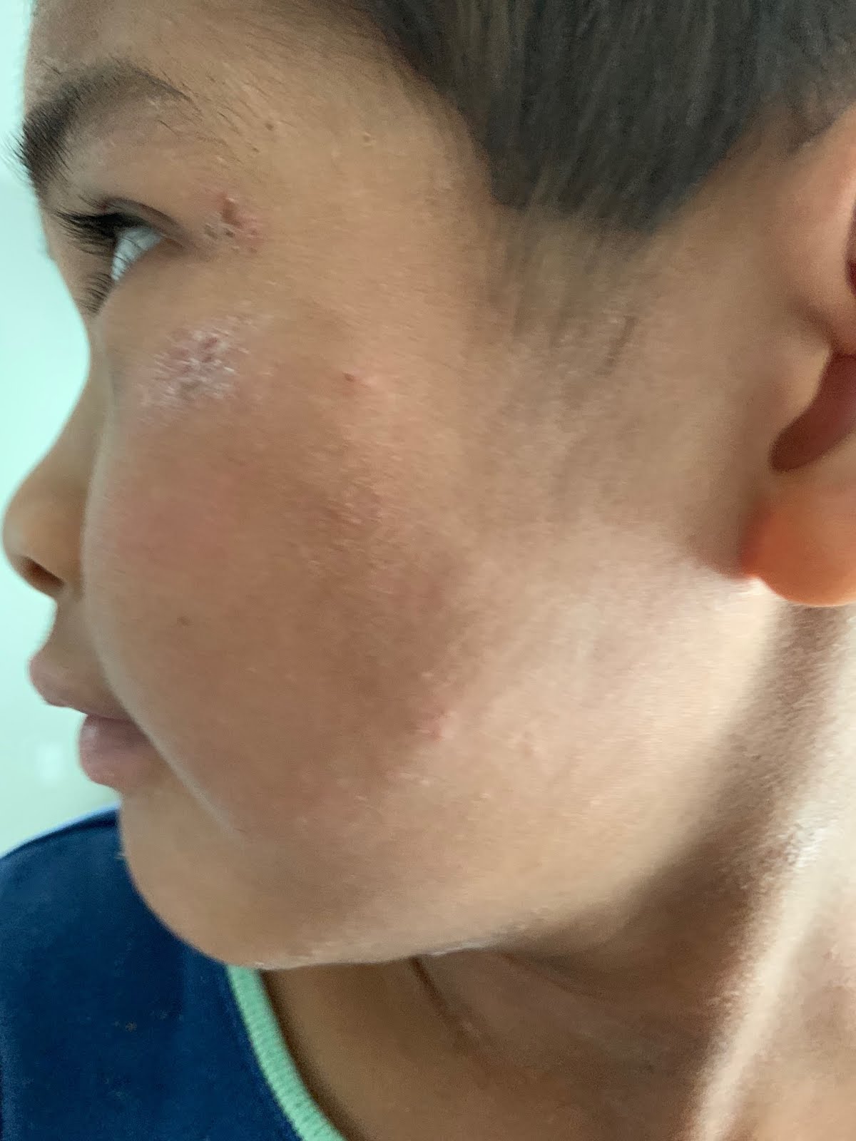 Full of energy this morning. He slept at 10ish last night woke up at 845am. Didn't wake up to an itch fest. He slept so good. We don't moisturize and I don't think we ever will. Let his skin breathe. Lotion didn't bring him comfort, didn't take away the itch or the ooze and didn't cause him pain either. So we just let it be.